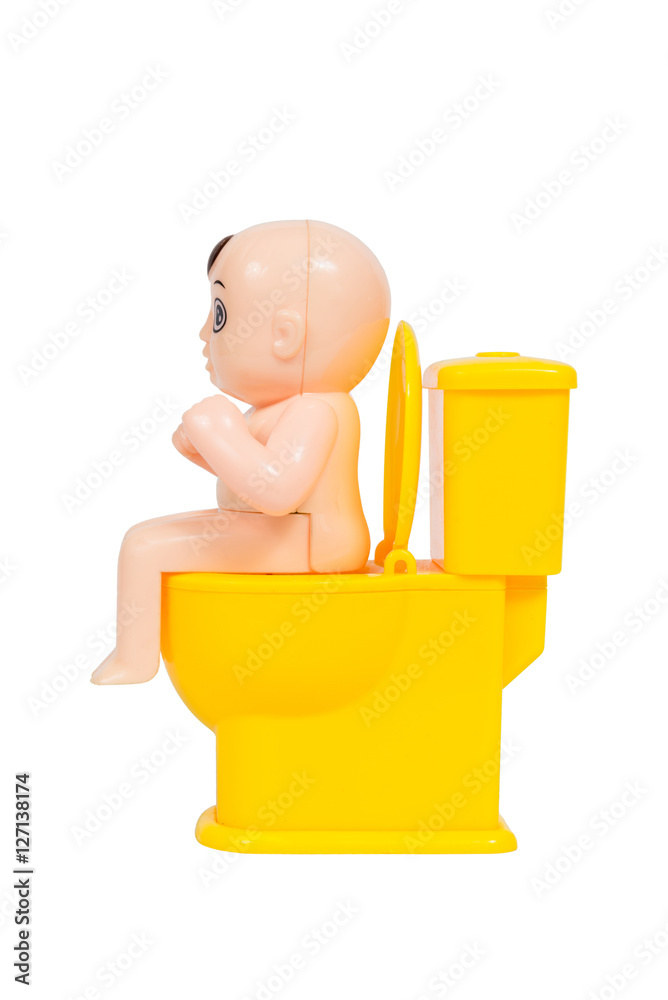 Doll Baby Toy Sit On Toilet Bowl Isolated On White Background Stock Photo Adobe Stock